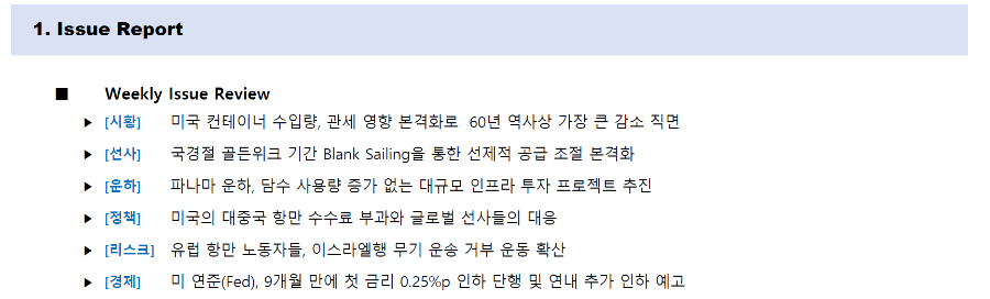 제임스포워딩에서 항로동향을 안내 드립니다.